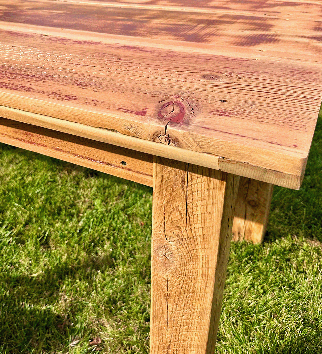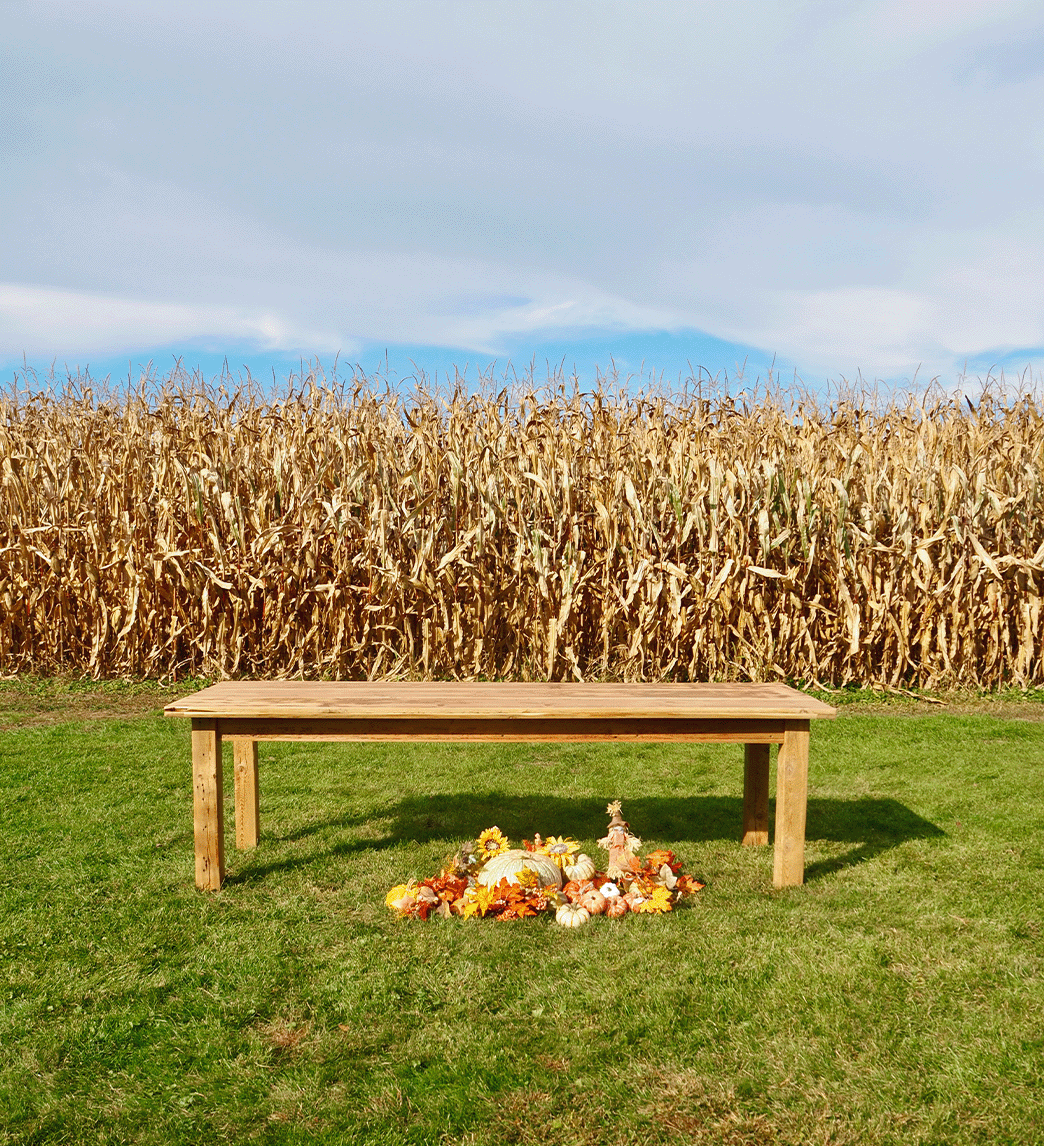 Long live the Cornfield King—monarch of the harvest, ruler of the rustic realm, and proud wearer of a crown made entirely of golden grain vibes. This long, lean beauty brings a sense of open-sky ease into any space. Its reclaimed barn wood planks carry decades of character, making it feel like you’ve invited a bit of country wisdom right into your living room. It’s the table that says, “Sure, pile on the casseroles. I was built for this.
